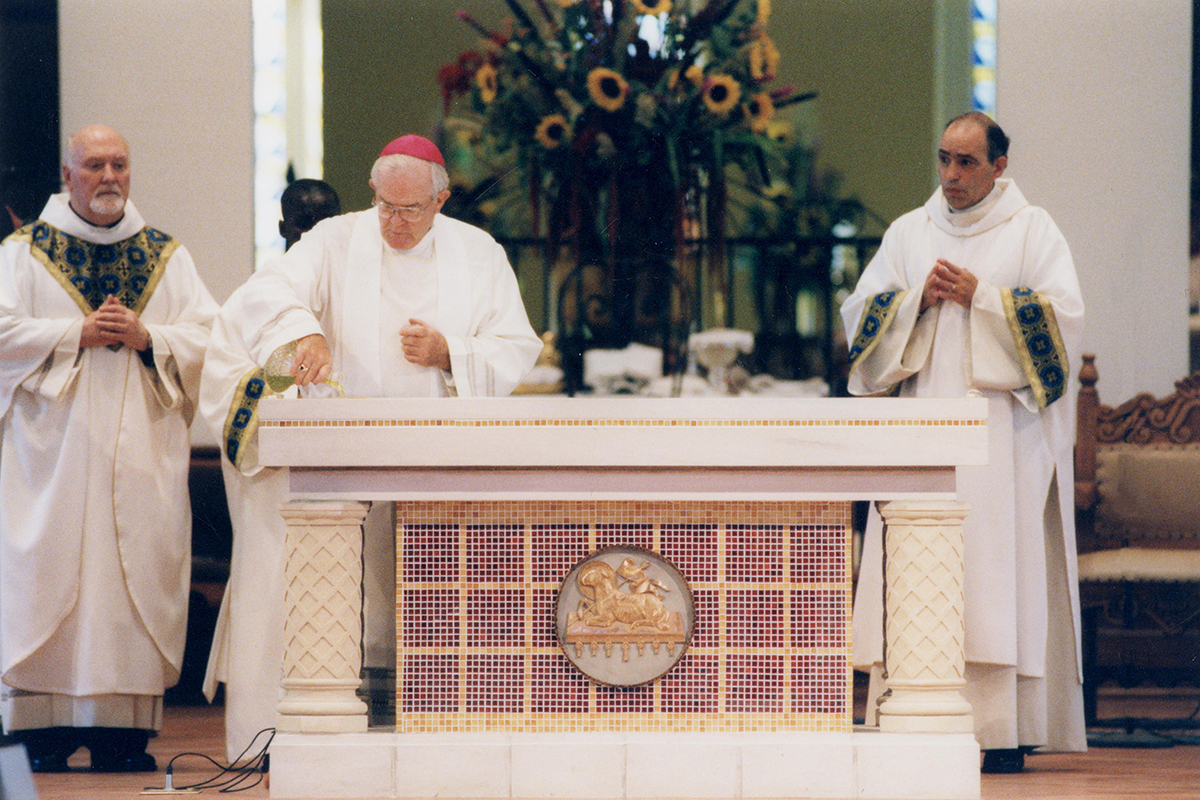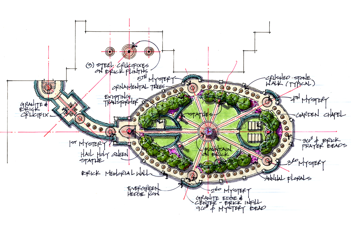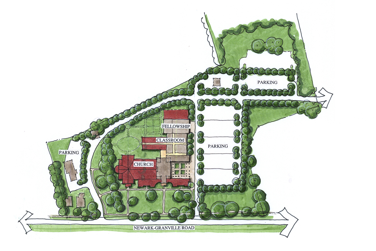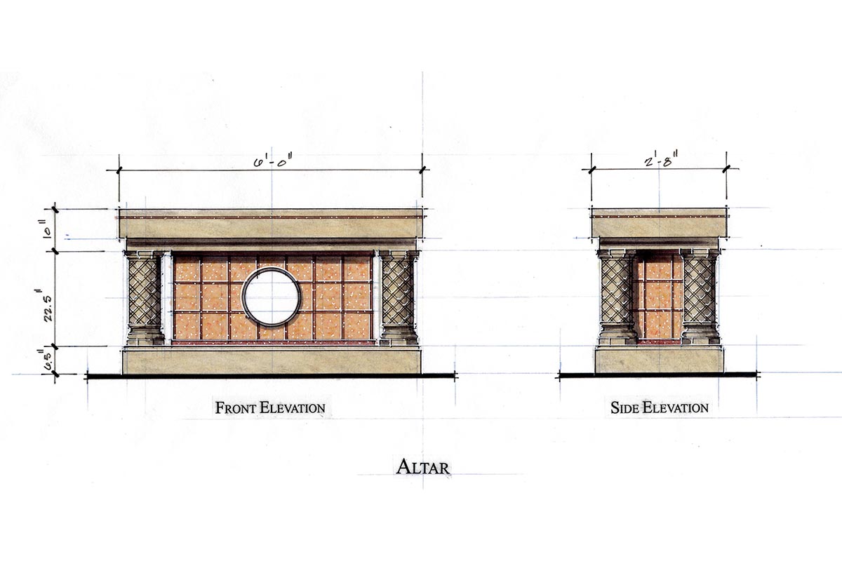 David B. Meleca was chosen by St. Edward the Confessor Catholic Church in Granville, Ohio to design a new church seeking to expand to 900 seats. Meleca designed a new 14,500 sf cruciform worship space and renovated the existing church as the Narthex of the new complex. The new Narthex is accessed from the east via a Classical entrance portico. The wood ceiling and timbers of the original church are still visible in the Narthex which includes a baptismal font under a cupola. The interior includes original murals painted by a local artist, a choir loft with pipe organ, side chapels and a perpetual adoration chapel. The exterior features brick arches and quoins, limestone caps and a rusticated limestone base.